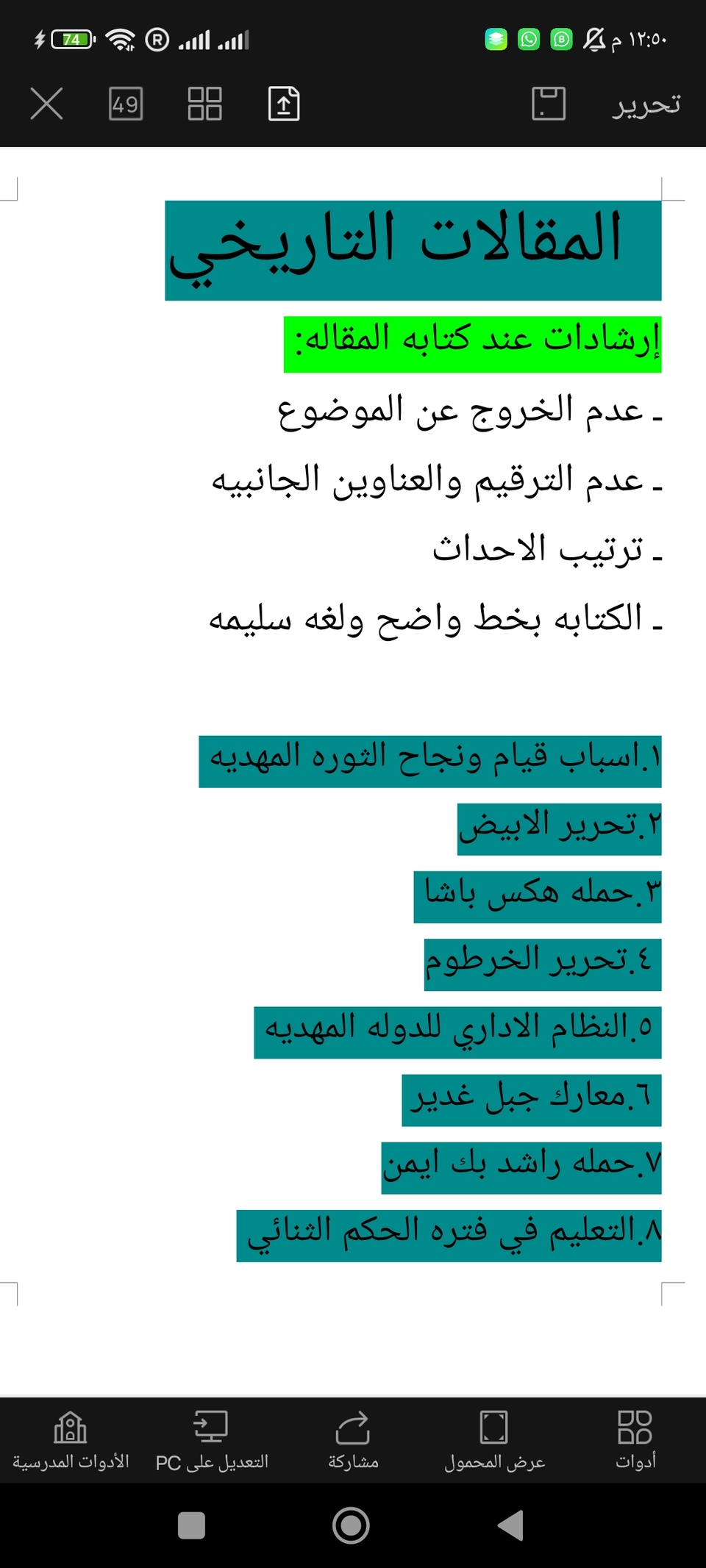 أرواق عمل لمادة التاريخ الصف الثالث متوسط