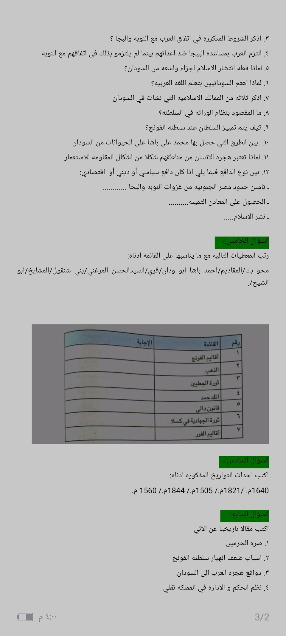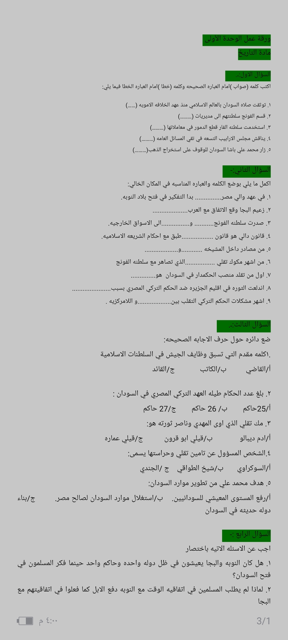 أرواق عمل لمادة التاريخ الصف الثاني متوسط