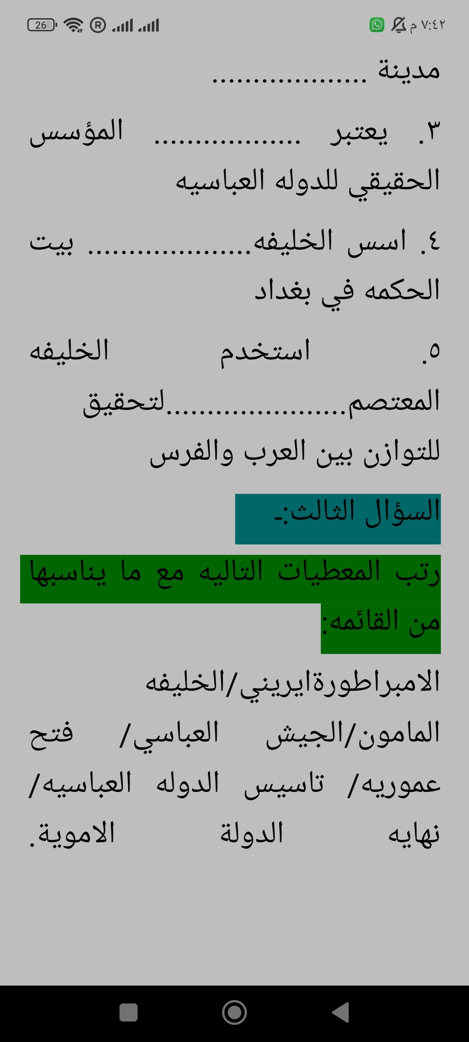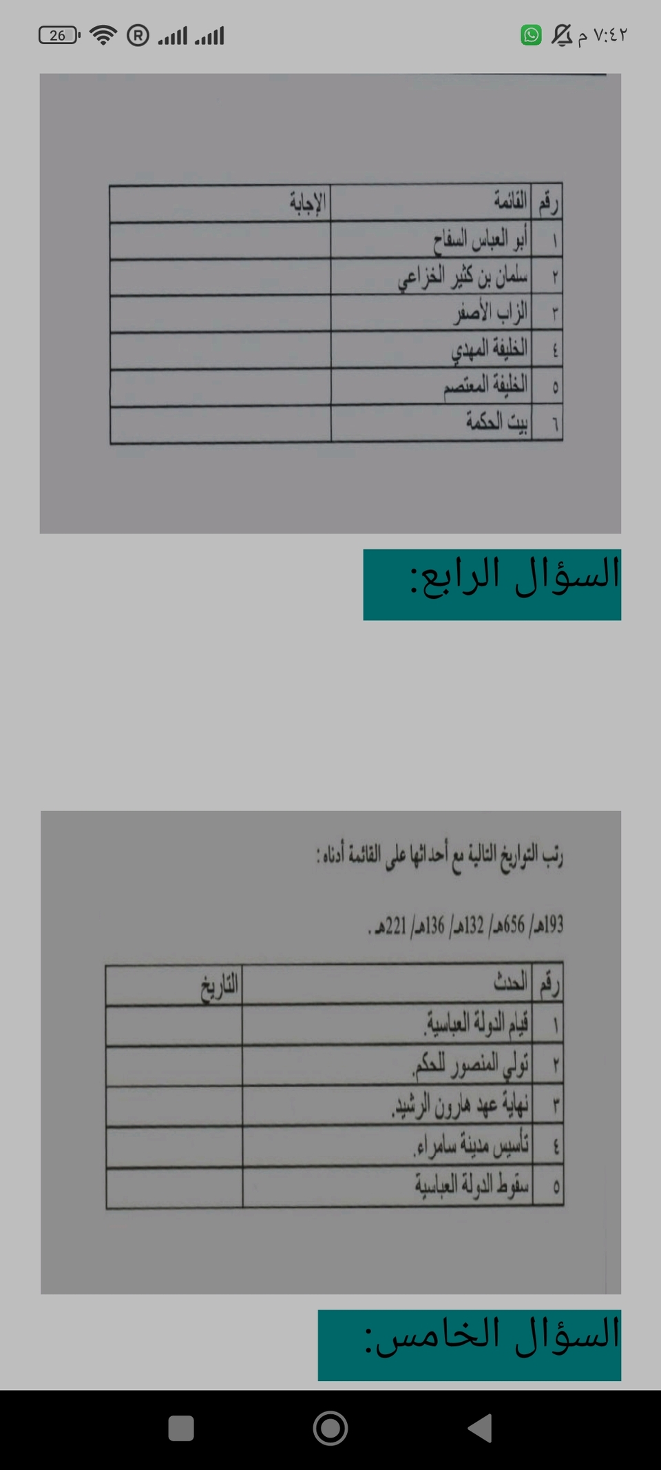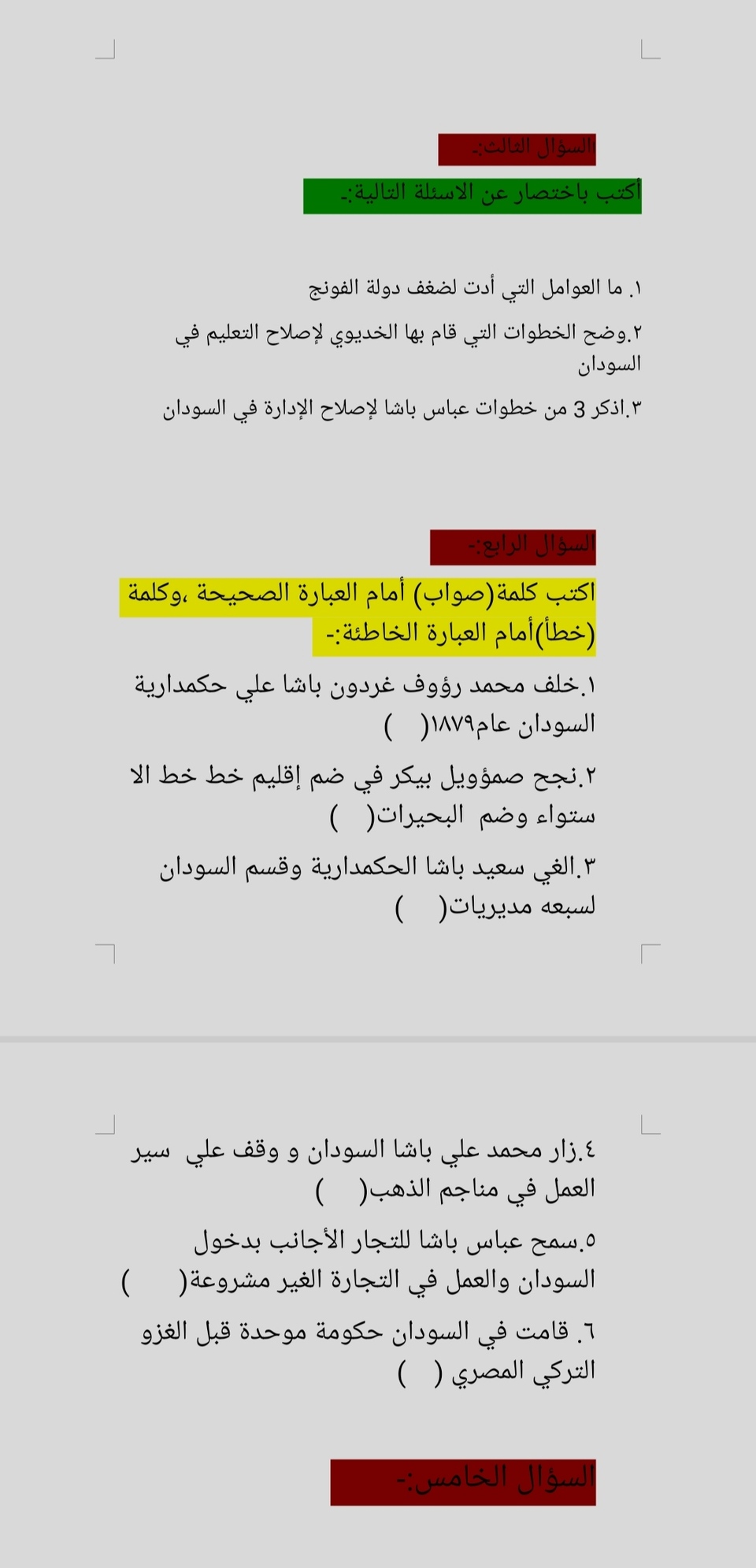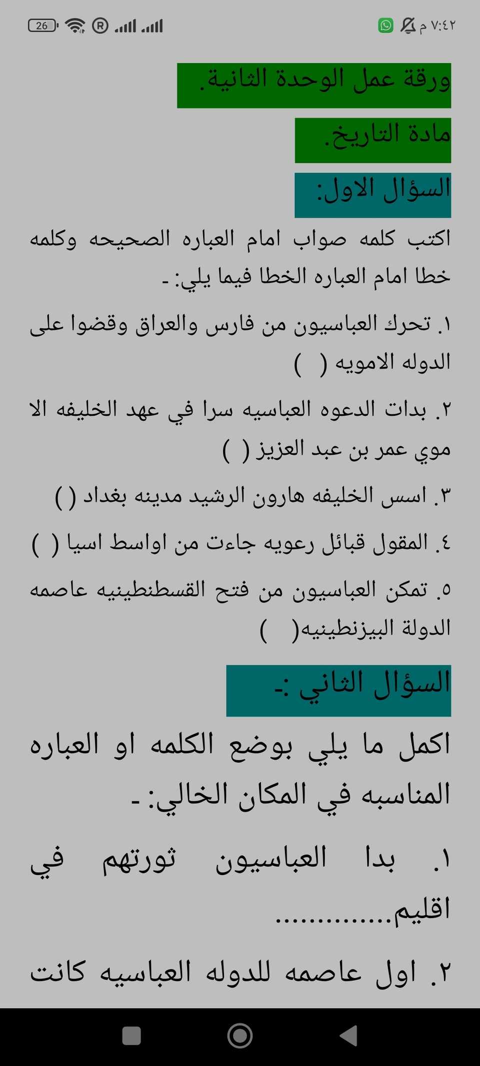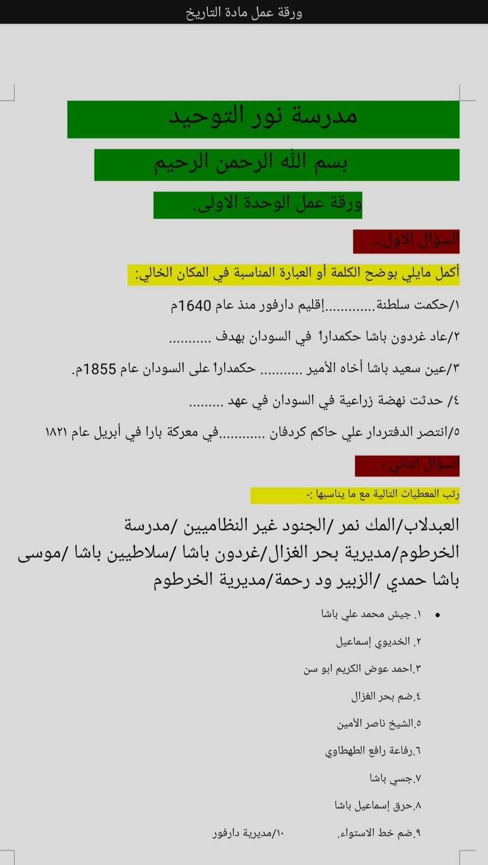 أوراق عمل في مادة التاريخ
