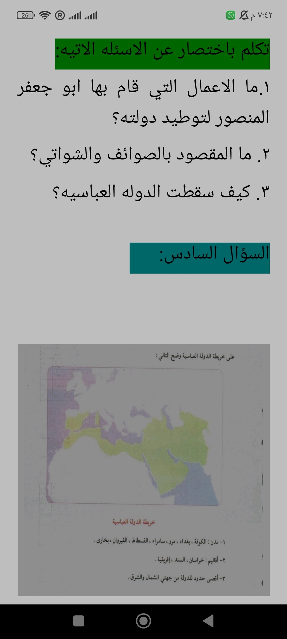 أوراق عمل في مادة التاريخ الصف السادس الابتدائي