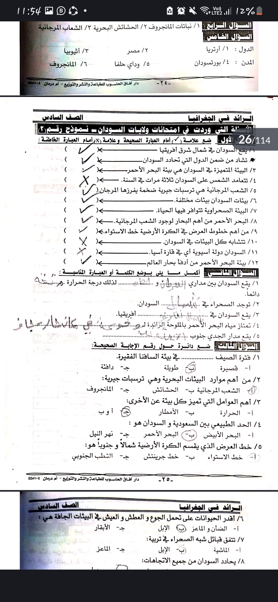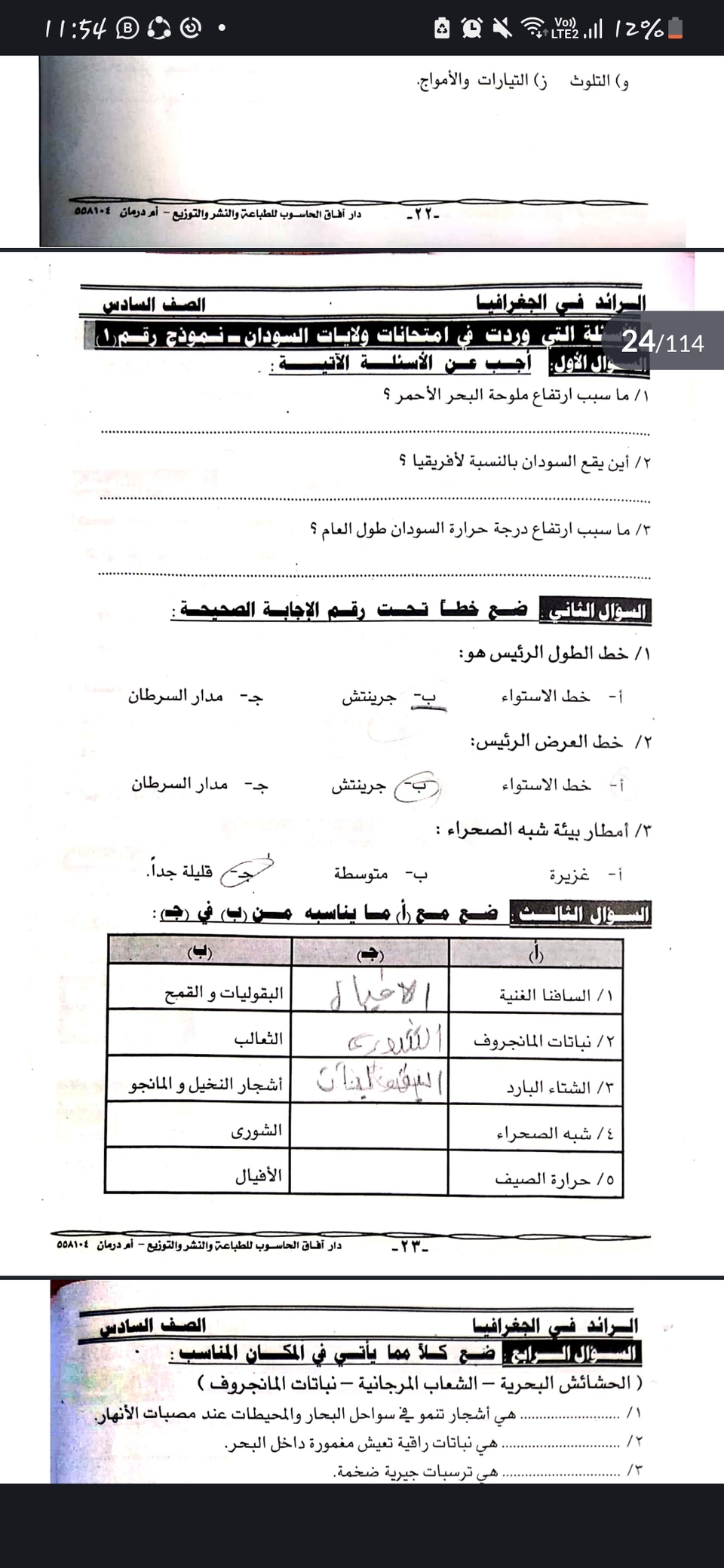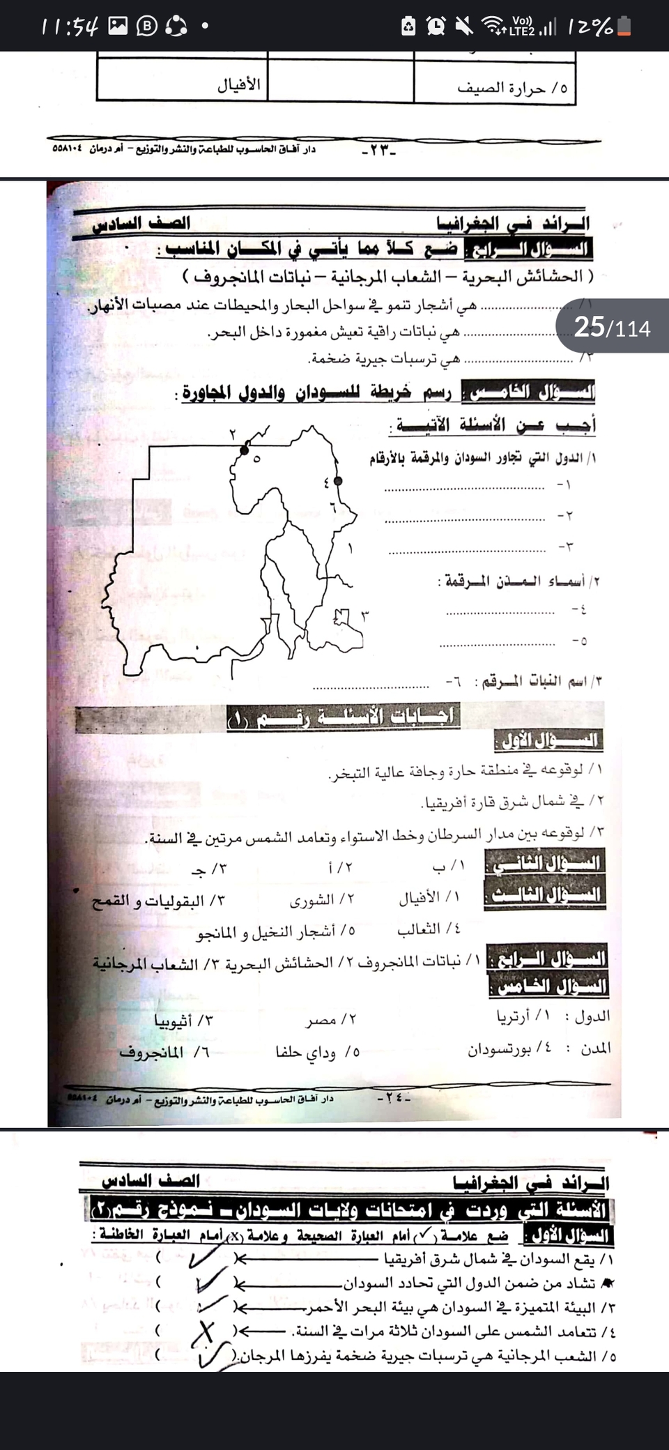 أوراق عمل ماده الجغرافيا للصف السادس