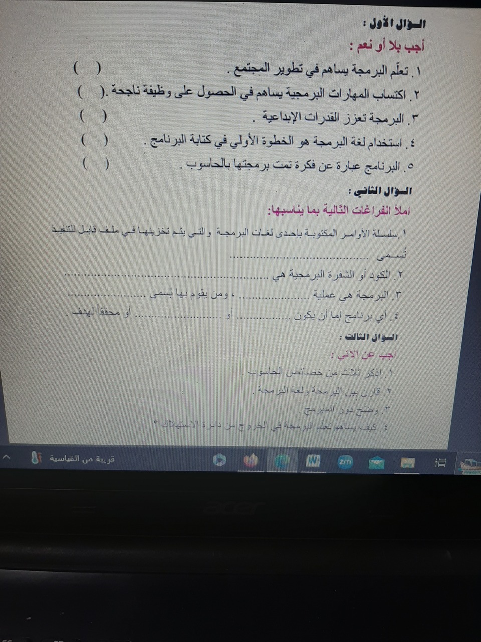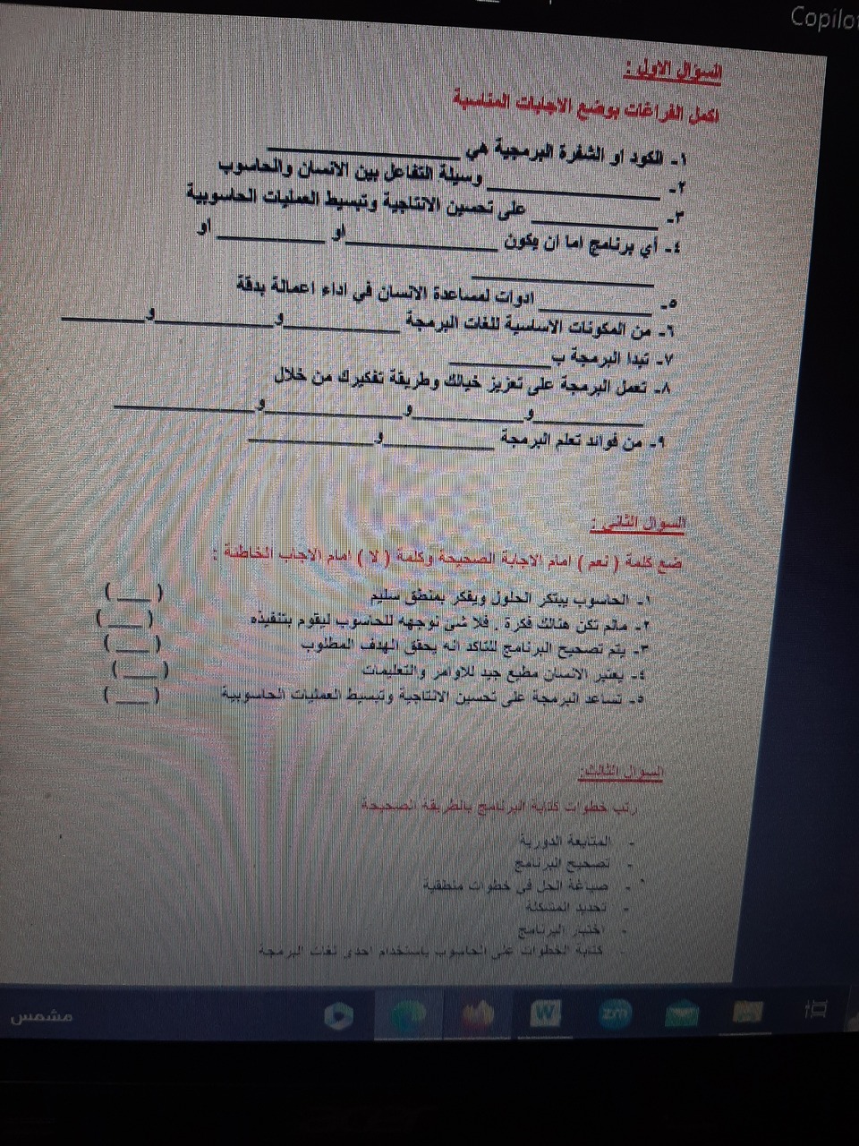 أوراق عمل مادة الحاسوب للصف الثالث متوسط